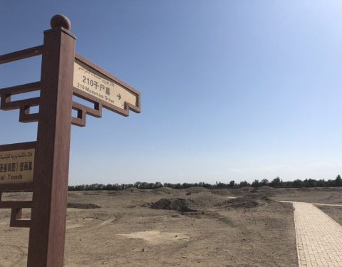 古墓距离高昌故城不远,可以一并游览。墓地很大,有许多墓冢,目前开放了三座墓的地宫,一座内有两具干尸,另两座内有壁画。墓中出土的文物在新疆博物馆里看到过一部分。