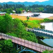 百草园里面的竹子覆盖率也很多,不过小池塘更多,营造出非常浓郁的自然气息。百草园内的鳄鱼池,里面的鳄鱼数量还挺多的,不过体积倒不是很大,应该是扬子鳄,鳄鱼池的上方有一条索道,游客就是在索道上方欣赏鳄鱼池的,有些游客还会摇动索道寻刺激。下滑索道是收费项目,乘坐索道可以看到百草园周围的景色,重量太轻或者太重的游客不让乘坐。百草园内的动物种类也蛮多的,一些温顺的动物游客还能近距离接触喂食,凶猛的动物就会被铁栏围起来。百草园内的游乐场,游乐项目并不多,但是小孩子都会喜欢,成人也能体验,非常适合亲子游。 展开