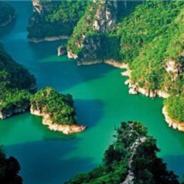 峡长谷幽,山青水碧,群峰竞秀,层峦叠嶂,峰回路转,曲径通幽,有着“中原第一大峡谷”,"云台天池“之誉云台天池【峰林峡】湖是翡翠湖~“人间天上一湖水,万千景象在其中”。景观姿态万千,美景如画,独具风情的山水立体画卷~乘船游览,穿移景换,水面碧绿柔美,水面宽窄相同,变换有序,让人应接不暇~