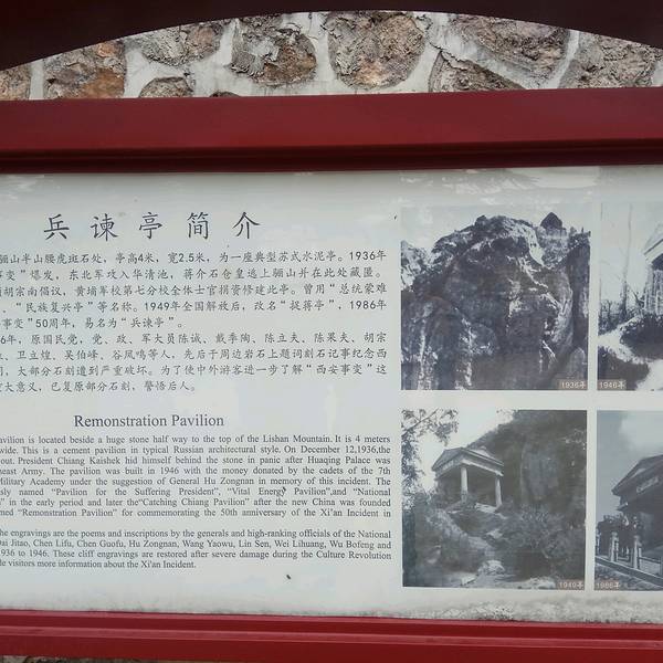 九一八事变后,蒋介石携夫人宋美玲来陕,以游山玩水为名,布置大规模的剿共活动,此期间,张、杨两将军在洛阳、西安、临潼等地数次劝谏蒋“联共抗日”均遭到拒绝,1936年12月12日凌晨4时许,张、杨带兵对华清池形成包抄之势,酣睡中的蒋突闻枪响,仓惶在两名侍卫搀扶下从华清池五间厅后窗逃跑,藏于半山腰虎斑石东侧石峡洞内,后来被搜山部队发现,扶掖下山,送往西安,这就是震惊中外的“西安事变”,是中国近代史上的一个重要转折点,促进了国共第二次合作,为抗日战争的胜利奠定了坚实的政治基础。这座兵谏园是2001年为纪念“西安事变”65周年时建造,陈列有当年“西安事变”时的兵器实物。 1936年12月12日,在临潼和西安响起了一片激烈的枪声,国民党爱国将领张学良、杨虎城将军联合发动了震惊中外的西安事变,也称“双十二事变”。 事变的爆发并非偶然,它是日本帝国主义节节进逼,蒋介石对外步步退让,对内排除异己,大打“剿共”内战,残酷镇压人民,国内各阶段发生剧烈分化,重新组合的结果。1931年,日本帝国主义发动了蓄谋已久的九一八事变。蒋介石命令东北军绝对不准抵抗,短短几个月,日军侵占了东北。进而日本帝国主义的侵略魔爪伸向华北。平津危急!华北危害!中华民族危急!中华民族处在亡国灭种的危难关头。但是蒋介石仍不改初衷,继续热衷“剿共”内战。 1935年10月,蒋介石在西安设立了“西北剿匪总司令部”亲自兼任总司令,并调武汉行营主任张学良任副总司令,代行总司令之职,东北军全部调往陕甘一带。同时,又命杨虎城的十七路军与之配合。在陕南、陕北同时向转移到陕北的中国工农红军发起进攻。在“围剿”红军内战中,东北军三个师被消灭,十七路军几乎损失殆尽。 这一切都促使张学良、杨虎城进一步认识到,跟着蒋介石走“攘外必先安内”的道路,只能是死踊路一条。从此,二人极力避免同红军作战,双方也就再没有发生过大的武装冲突。张、杨也加紧了与中国共产党的联系,以适应全国抗战形势的发展。 1935年12月,中国共产党在陕北瓦窑堡会议上制定了抗日统一战线策略。1936年3月,中共中央派李克派李克农前往抗川,与张学良、王以哲进行谈判。4月9日,周恩来、李克农和张学良又在延安举行会谈,对停止内战、组织国防政府和抗日联军问题、红军集中到河北抗日问题、派代表赴苏联问题、通商问题等,都进一步交换了意见,并达成协议。这次会谈,对张学良真正接受“停止内战,一致抗日”的主张,具有决定性的意见。 同时,中共陕西省委兼军委负责人汪锋曾持毛泽东主席亲笔信到西安会见十七路军将领杨虎城,表明中国共产党建立抗日民族统一战线的主张,随后又派叶剑英同志作为红军代表常驻西安,协助张、杨工作。 经过以上努力,形成了以中国共产党为主,红军、东北军、十七路军三方面联合抗日的统一战路,为推动全国抗战形势的迅速发展,奠定了基础。 1936年10、12月,蒋介石两次来陕,进驻华清池行辕,下榻五间厅。在“行辕”内召见“西北剿总”高级将领,宣布继续“剿共”的计划,要求张、杨立即做好一切“剿共”准备。张、杨举力争取,希望停止内战,共同抗日。蒋介石却声称“在杀尽红军,捉尽共匪之前,决不谈抗日之事”。并发出最后通牒,如不听从,就将东北军调往福建,十七路军调往安徽。中央军进驻陕西。张学良声泪俱下,痛陈利害,始而“劝谏”,继而“苦谏”,终而“哭谏”。但还是难于打动蒋介石的铁石心肠,他顽固地说:“现在你就是拿枪把我打死,我的剿共计划也不能改变”。杨虎城将军的劝谏同样也遭到无理拒绝。 1936年12月9日西安青年学生纪念“一二九”运动一周年的游行请愿活动,遭到蒋介石残酷镇压的事实,进一步促成张、杨两位将军实行“兵谏”的决心。 1936年12月12日凌晨,在一片激烈的枪炮声中,事变在西安、临潼同时爆发。临潼骊山战斗,由东北军担任,师长刘多荃任总指挥,周福成和唐君尧任外线指挥。外线部队在灞桥以东和骊山附近进入阵地,包围了华清池,内线卫队营官兵,迅速解除驻华清外禹王庙宪兵武装,并与蒋的侍卫发生激烈战斗。蒋介石梦中被枪声惊醒,从五间厅卧室翻窗逃到后山,卫队营抓紧搜山,终于在骊山西绣岭半山腰虎斑石的夹缝中抓到蒋介石,送往西安。在西安,十七路军控制了机场,火车站等交通要道,保证了事变的胜利。 事变的消息像一声惊雷,打破了黑夜的宁静。传遍全国,传遍世界,引起国内外各种政治力量极大的关注。惟有毛泽东为首的中国共产党,审时度势,统观全局,从抗日民族解放斗争和全民族根据利益出发提出和平解决的方针。应张、杨的邀请,中共中央决定派以周恩来副主席为首的中共代表团,立赴西安参加谈判。中共代表团在西安做了大量的工作,再加上张、杨的努力,以及宋氏兄妹的斡旋,蒋介石终于接受了“三位一体”的出的停止内战,联合红军抗日等六项条件。12月25日,蒋介石被释放回南京,西安事变得到和平解决。 在中国历史上,西安事变是改革历史进程的最主要事件之一。它的和平解决避免一场大规模内战的严重危机。结束了长达十年之久的国共内战,促成国共两党的第二次合作战线旗帜下,经过八年艰苦奋斗,打败日本侵略者,赢得了民族解放斗争的伟大胜利,为世界反法西斯战争胜利做出了重大的贡献。 岁月沧桑,风风雨雨,惟有西安事
