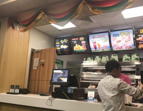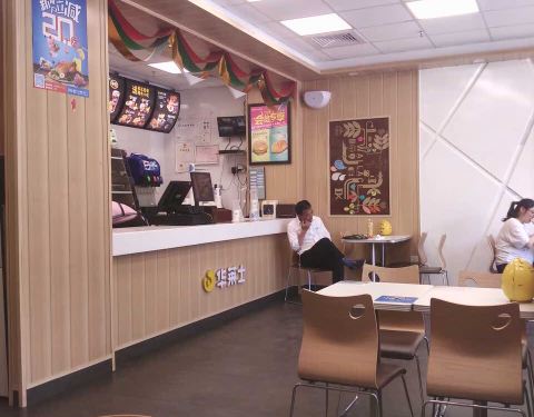 - 店内装饰与大部分华莱士门店大同小异吧,整体还算干净利落,食材口感还可以,学生为主要消费群体