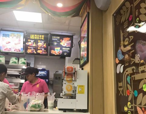 店内装饰与大部分华莱士门店大同小异吧,整体还算干净利落,食材口感还可以,学生为主要消费群体