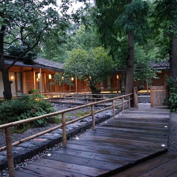 这里是峨眉山风景区的入口标志吧,不过是大景区入口,还不需要买票。牌坊进去后有超多酒店宾馆和吃饭的馆子,很热闹。 我们来这里是因为住在旁边的网红民宿拈花溪,就在隔壁,超近。傍晚来附近逛特别舒服。