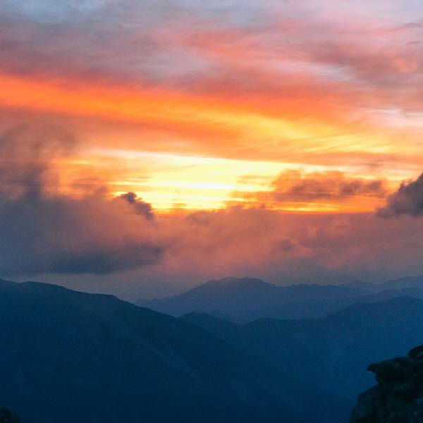 这种色彩,仿佛是作画时不小心打翻了颜料在蓝色宣纸上,再用妙笔随意挥洒几下,浑然一体,任凭哪位大师也画不出这样的图画。云霞中似有重重叠叠的天宫露出檐角亭台,又似是哪位仙女走过时飘落的七彩霓裳……沿着布满碎石的山路,我登上了海拔超过3600米的秦岭第一高峰——拔仙台。那是多少人梦想的地方啊!