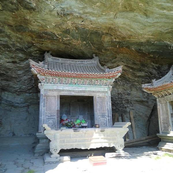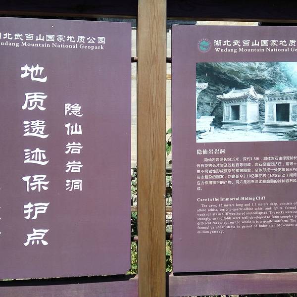 但是仁威观只剩下遗址,没必要走。往前直行200米是五龙宫,往下走就是登山的路。需要的自己搜次日早上8点坐车来到了五龙宫路口,202路和203路都到这里。五龙宫路口下,或者蒿口村13组下。这条路到五龙宫全程16公里,也可以包车去五龙宫大概150,一定要蒿口当地的车才能进去。需要的自己搜。就在高架下面。...次日早上8点坐车来到了五龙宫路口,202路和203路都到这里。五龙宫路口下,或者蒿口村13组下。这条路到五龙宫全程16公里,也可以包车去五龙宫大概150,一定要蒿口当地的车才能进去。需要的自己搜。就在高架下面。公路有设卡,走左边的土路绕过去。土路上去约百米就有一个石头堆砌的台子。沿着台子右边小路下去就回到公路了。沿着公路走经过这个山坡的时候有一片坟地,坟地再往前走几步有一条小土路。沿着小土路翻过这个山坡可以近一点。参照物就看上面的电线杆和小树好了。怕麻烦也可以走公路。接下来一路沿着公路走经过一个小村子来到一个分岔路,走右边的土路。怕麻烦依旧走公路。再次回到公路经过寄马峰垃圾回收站翻山坡下去有片茶树地,到仁威观,那里有一条小路可以直插隐仙岩。但是仁威观只剩下遗址,没必要走。还是走公路,虽然远一点,但是速度快。继续向前就到了隐仙岩隧道,右边的台阶上去大约1里路就是隐仙岩。隐仙岩是武当山三十六岩中的一座大型岩洞,在中国道教历史上久负盛名。据史料记载,汉代著名方士尹轨就在此修行。尹轨在道教史上有着很高的地位,传说老子曾授他《道德五千言》。隐仙岩实际上是一座石窟,高十一米,深十三米。由于历史上有许