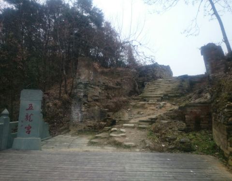 多高人在此修练,所以隐仙岩也曾一度名声远播,但现在岩洞内仅有五座石殿了。这两个石造像一个是太阳星君,一个是太阴星君。石像背后都有两排神秘的文字。虽说在道教典籍中有自创的龙章凤文等,但这两排酷像“篆书”的文字如何读、代表着什么,至今还无人破解。离开隐仙岩继续上路。可以原路返回,通过隐仙岩隧道。也可以走台阶直接翻过隧道。过了隐仙岩隧道再往前走就是五龙宫隧道。通过五龙宫隧道就来到这个路口,走右边。此时正好遇到5个浙江绍兴的驴友。继续往上会有一个长长的台阶。继续往前走会有一个下去的台阶。往前直行200米是五龙宫,往下走就是登山的路。先去五龙宫一片残垣断壁展现在眼前。残破的碑亭。五龙宫正在修整,工程进度很慢,再过几年五龙宫就要成为封闭景区了。要去就得要乘早。武当山五龙宫,全称“大五龙灵应万寿宫”、“兴圣五龙宫”,共建有宫观庙宇850间,规模一度庞大,被列为武当山建筑最早的九宫之一。五龙宫始建于唐代贞观年间,均州守姚简奉旨上山祷雨应验,后就其地建“五龙祠”。五龙宫成为武当山古建筑中,第一座由皇帝下旨敕建的宫观。这个是二爷的塑像吧五龙宫因这五口古井而得名,一井打水,五井皆响。真武大殿日池月池在五龙宫修整半个小时,我们继续上路。 展开