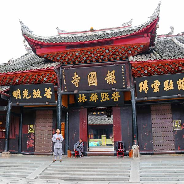 很多人在那里拍照。到了博物馆,很遗憾的是,关门了。这是进山处的小瀑布——秀甲天下找到住宿安顿下来后,时间还早,决定去博物馆,报国寺,伏虎寺几个地方转转。这是进山处的小瀑布——秀甲天下。很多人在那里拍照。进山处一侧的佛像