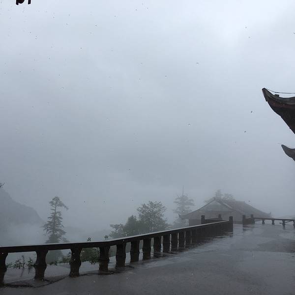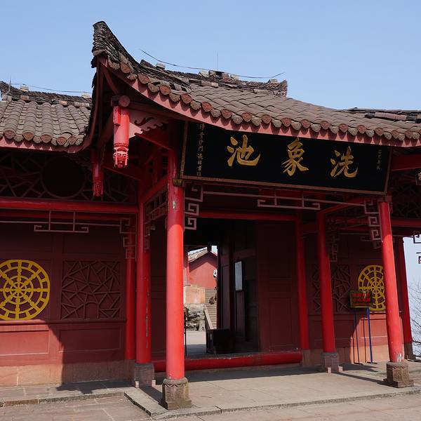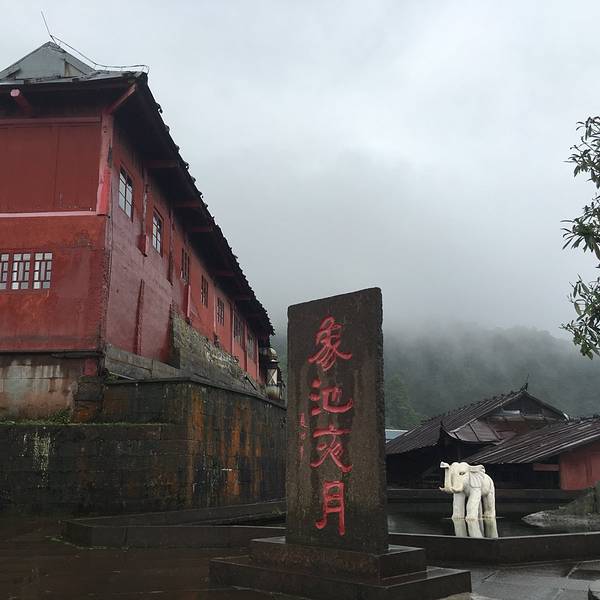步行上山比较大的中转点,在遇仙寺就可以看见远处山顶的红色庙宇建筑,就是洗象池。