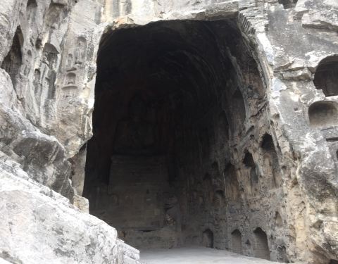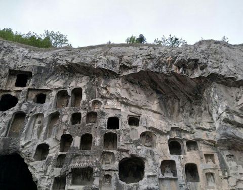 古阳洞在药方洞的旁边,历史悠久,它是其中一个历史最悠久的石窟,除了里面的佛像,还可以清楚看到雕...