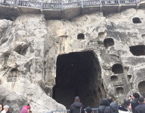 古阳洞只不过是龙门石窟里的一个小洞啊,来这里的人还是很多的,这里真的是密密麻麻很多很多的洞啊,...