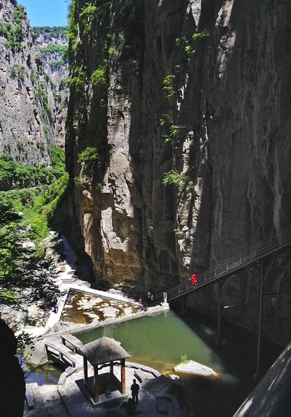 属于太行山的一部分,峡谷幽深,巨大的石头,崎岖的步行栈道,各种各样的溪水,确实是很独特的峡谷穿梭体验