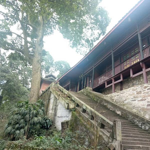便到达峨眉山雷音寺,雷音寺在一处半山坡,寺内有大雄宝殿,还设有客堂,素餐厅,寺前有一棵大树,环境不错从伏虎寺沿山路前行约一公里左右,便到达峨眉山雷音寺,雷音寺在一处半山坡,寺内有大雄宝殿,还设有客堂,素餐厅,寺前有一棵大树,环境不错。