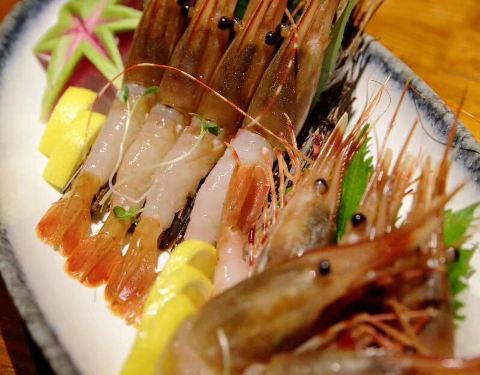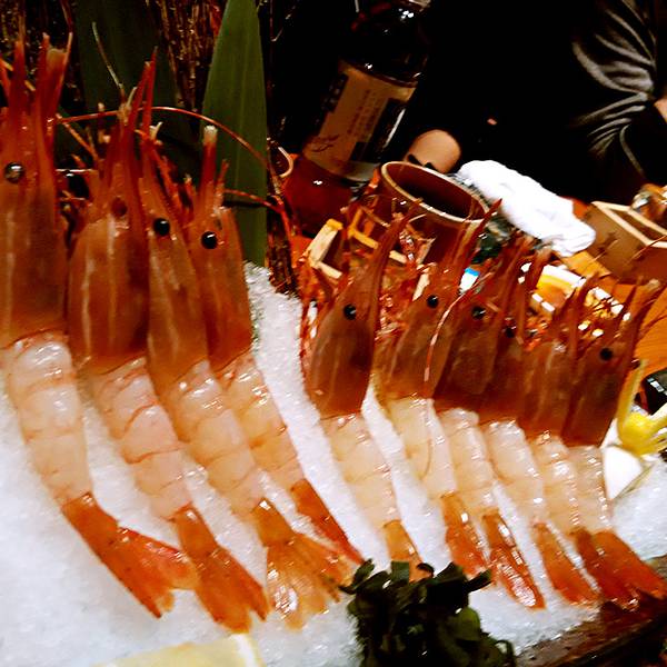 刺身牡丹虾个头很大,虾身吃刺身,虾头可以煎烤着吃。