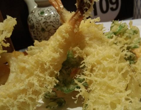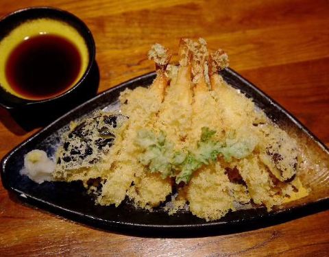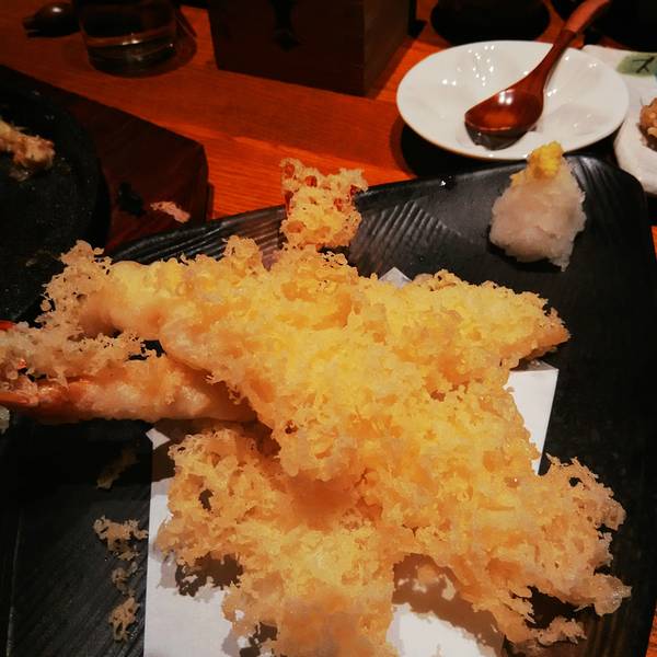 大虾天妇罗,面糊有点多,挺脆的,蘸料微淡。