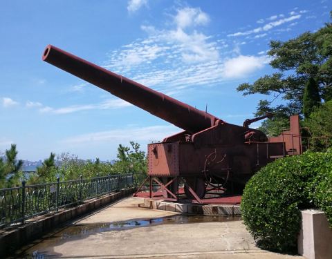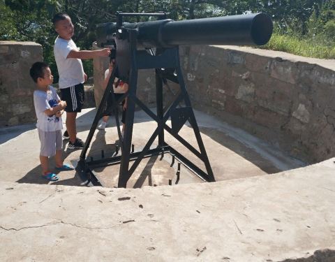 刘公岛森林公园步行比较辛苦,最好坐缆车上下,坐在缆车上能够全览刘公岛全貌和海景,只是山顶没有什么可参观的,只有旗顶山炮台,三门锈迹斑斑的纺制品大炮孤零零的立在山顶上。