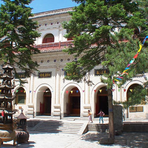 无量殿是一座砖砌结构建筑。相传,唐代清凉国师于唐德宗建中四年在此殿内著述《华严疏抄》。清凉国师本名澄观,为七朝九帝之师,殿内写作达四年之久。殿内供毗卢佛大铜像,取佛法无量之意,称为“无量殿”。又因殿内没有梁柱,有人也叫“无梁殿”。这座殿分上下两层,明七间暗三间,面宽二十八点二米,进深十六米,高二十点三米,重檐歇山顶,砖券而成,三个连续拱并列,左右山墙成为拱脚,各间之间依靠开拱门联系,型制奇特,雕刻精湛,宏伟壮观,是我国古代砖石建筑艺术的杰作。
