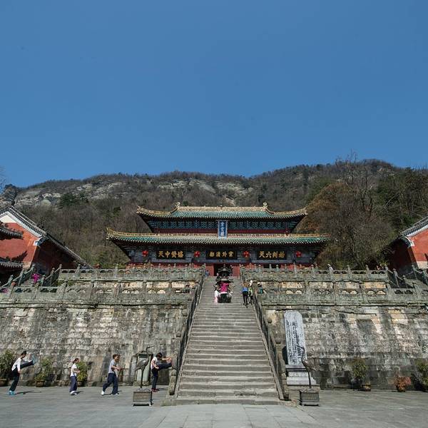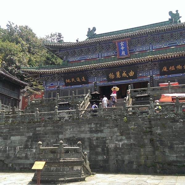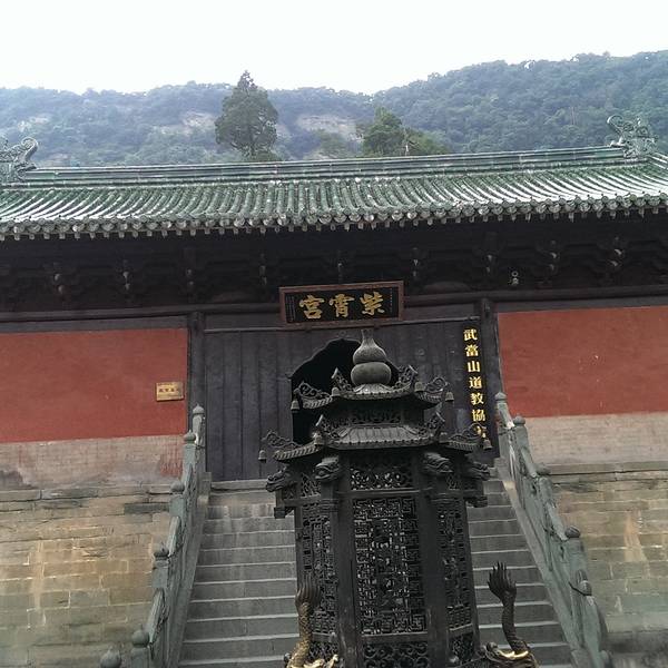实用 紫霄宫没有金顶或者南岩宫名气大,也并不含在武当山的大门票里,进去还得另购十五元的门票,但因祸得福的是第二次去武当山了,第一次是十年前,那时候只知道一门心思地去爬金顶,为了逞强还特意不坐缆车,全程自己爬上去了,到现在根本连金顶长啥样都不记得。这次带爸妈出来金顶是肯定去不了了,于是就去了没有什么攀爬...第二次去武当山了,第一次是十年前,那时候只知道一门心思地去爬金顶,为了逞强还特意不坐缆车,全程自己爬上去了,到现在根本连金顶长啥样都不记得。这次带爸妈出来金顶是肯定去不了了,于是就去了没有什么攀爬难度的紫霄宫和太子坡,没有想到却被这两处建筑惊艳到!在武当山宏伟的建筑群中,紫霄宫没有金顶或者南岩宫名气大,也并不含在武当山的大门票里,进去还得另购十五元的门票,但因祸得福的是,游客也因此少了很多。虽是清明小长假期间,但游人也不算拥挤。进去之前没有想过会看到怎样的景观,进去之后首先看到的是两座对称的碑亭看,难得的清静一刻,红墙绿瓦配上蓝天古树真的是美爆了!无人的深巷,美得让时光停留。走过长长的台阶,穿过第一层朝拜殿之后忽然看到恢宏大气的紫霄宫坐落在群山怀抱中真的有被惊艳到,老爸在第一眼看到紫霄殿的时候也是忍不住惊叹,感觉真的有仙风道骨!真的有被这色彩惊艳到,像油画一样的美!紫霄殿后面是父母殿,木质结构的大殿依然雄伟壮观!特别赞的是殿前的广场上很多武当弟子练功,耍起刀剑来真的是虎虎生风;而与此同时,亦有不远万里慕名而来的老外在屏心静气地练习太极……攻略: