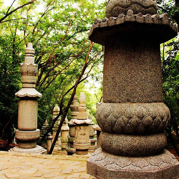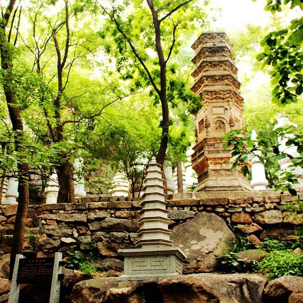 盘山塔林,位于天津万松寺南侧,共九十九座。石塔呈方形、六角形或覆钵状,有檐的,无檐的,实心的,空心的,均为花岗岩雕凿,极为罕见。主塔普照禅师塔、太平禅师塔,为砖体结构,砖上浮雕图案清晰生动,充分体现了我国浮雕工艺的深厚造诣。