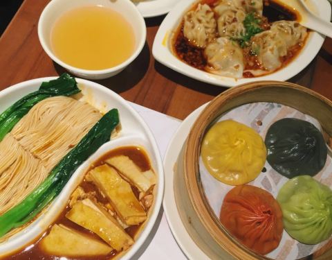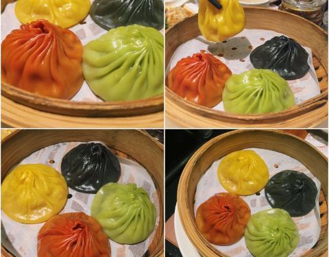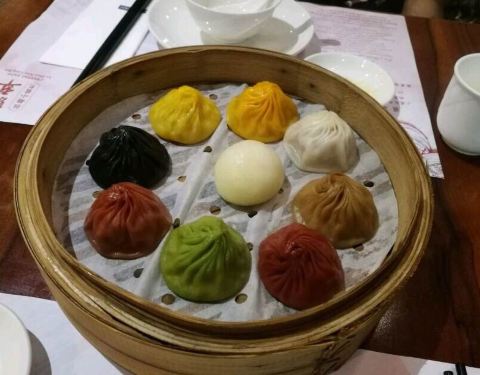 差不多人均100,菜品有点小贵,翡翠拉面小笼包,大多数人应该都知道这家店,因为广州有店,上海也有店。小笼包做的不错,品质也有保证。可大多数人不知道它是米其林食府,在香港有14家分店,其中有3家摘了星。小笼包八种颜色的外皮,采用天然的材料融合面粉而制作成的。打开蒸笼,骤见色彩缤纷的小笼包,便心情愉悦。吃下去更会发现不同颜色之小笼包,原是代表八种独有味道,除原味小笼包外,更包括黑松露鲜肉、鹅肝鲜肉、口水鸡、芝士鲜肉、麻辣牛肉、鲜虾及蔬菜鲜肉,馅料香浓之余,各有独特风味,外皮色彩缤纷,全由天然食材制作。黄色芝士外皮的馅里有芝士,红色的里面装着麻辣牛肉,黑色的有松露。 这种搭配不是因为外皮和内陷的颜色接近牵强附和在一起,而是match到好像浑然一体似的。皆因馅料的里料和外皮搭配,耗了师傅们很多心思。 比如黑松露,这个季节正当时,用它入馅,既符合时令,而黑松露这种珍贵的食材,你不必花费巨款去尝试,仅仅通过这款88元的小笼包,就可以品尝到。