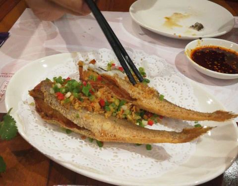 肉嫩鲜美的辣椒螃蟹小笼包,还有巴掌大小的香煎小黄鱼,口感超赞!