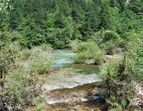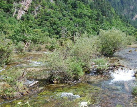 九寨沟风景名胜区盆景滩景观:又称盆景海,是进入九寨沟的第一个滩流景观