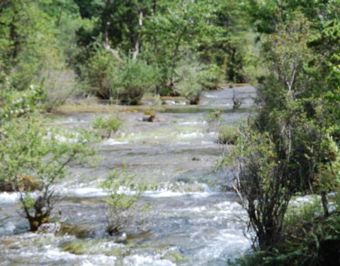 ...方,是一处水面开阔,河床较浅的区域,由于水流较缓,河床上有很多水生灌木,犹如盆景点缀在水域中间