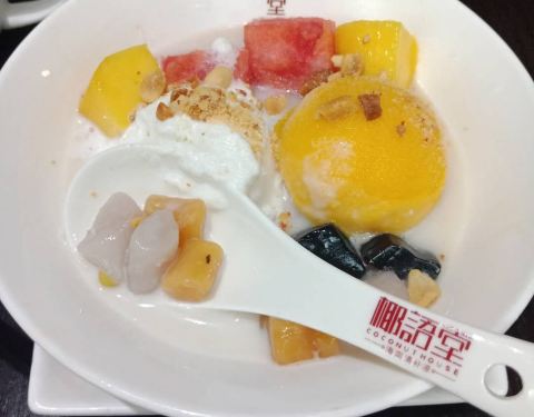 跑海口来除了吃了清凉补,剩下就是这个椰语堂印象最深刻了。超级好吃超级赞,比什么满记啊之类的要好吃多了。甜品就要有这种真枪实弹的果肉吃着才过瘾啊!价格也只有看你的一半,性价比超级高!好吃!!