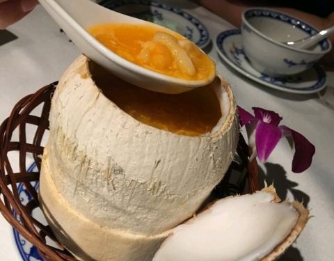 海鲜椰子汤,春卷非常有特色,品质不错,味道很赞,有古乐表演,挺好。