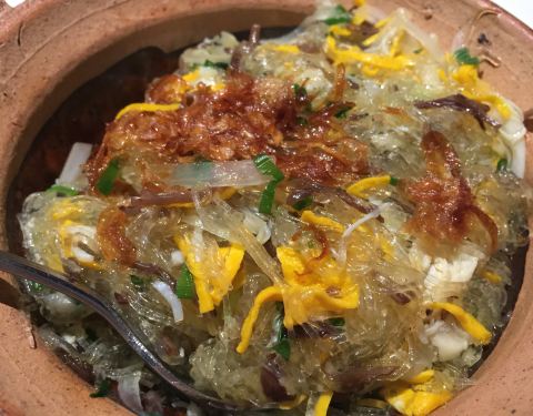This seems like a good ambience to do a marriage proposal... But if you're looking for food, the vermicelli with crab in a hot pot is pretty darn tasty.