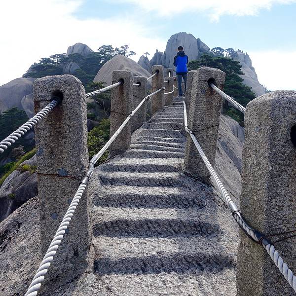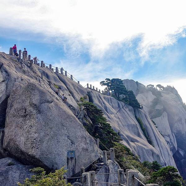 黄山的鲫鱼背,完全可以和华山的一些险处一较高下,如果两边没有索索的话估计没有几个人敢走,就算如...黄山的鲫鱼背,完全可以和华山的一些险处一较高下,如果两边没有索索的话估计没有几个人敢走,就算如此还是好多人是战战兢兢伏地而行,梭起走的,这地方确实吓人。