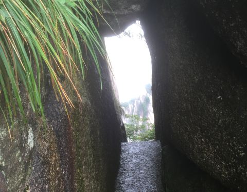 很窄小还两边都是悬崖,...在这山的对面一座山登山过程中,