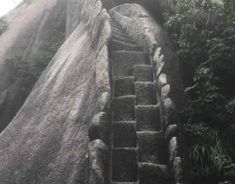 一边是悬崖峭壁让人不敢直视,另一边是山壁,我命令女儿一定靠着有山的那侧缓慢拾级而上,比较有安全...总觉得永远无止境,然而翻山越岭之后,突然大雾也掩饰不住的鲫鱼背跃然眼前。高峰之巅,上顶的路就陡峭而转弯,一边是悬崖峭壁让人不敢直视,另一边是山壁,我命令女儿一定靠着有山的那侧缓慢拾级而上,比较有安...总觉得永远无止境,然而翻山越岭之后,突然大雾也掩饰不住的鲫鱼背跃然眼前。高峰之巅,上顶的路就陡峭而转弯,一边是悬崖峭壁让人不敢直视,另一边是山壁,我命令女儿一定靠着有山的那侧缓慢拾级而上,比较有安全感,自己同样腿脚发软硬着头皮往上。天知道走在上面都这么险,工匠是如何在没路的情况下凿开条血路的...最后登上鱼背,两边只靠绳索做栏杆,稍有风吹草动那瘦一点的人估计都要担心自己的安危吧!我叫女儿压低重心,自己也把绳子当作救命稻草,两边抓牢缓慢挪动尚觉得能承受,可最可怕的是对面的人要回去,还得在这高山之巅来个狭路相逢,我一再提醒女儿小心对面来者的大包等等,生怕一个不小心就给挤下山崖....十米的路程,仿佛走了半生!终于安然过去了之后,一种如释重负的酸爽油然而生。我们竟然爬上了鲫鱼背!这时山下白茫茫一片,这样一定让人感觉没那么可怕。看得清清楚楚估计更让人发怵!走上回程的鲫鱼背,突然云开雾散,我感觉自己冒着生命危险拍了一张山下的景色。刺激多过一切。 展开