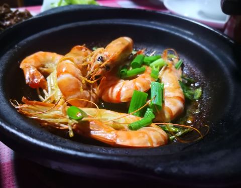 - 这三道菜都是用砂锅少出来的,特点都是很入味,味道偏厚重。 黑虎虾,虾肉很Q弹