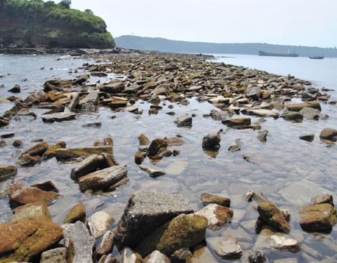 小岛很小,但有绿色植被覆盖,所以也充满着生机。猪仔岭在南湾的外侧,像卫士般守在南湾的出入口猪仔岭在南湾的外侧,像卫士般守在南湾的出入口。涨潮时,猪仔岭是孤立的小岛;退潮时有一条乱石的堤坝通向这里。小岛很小,但有绿色植被覆盖,所以也充满着生机。