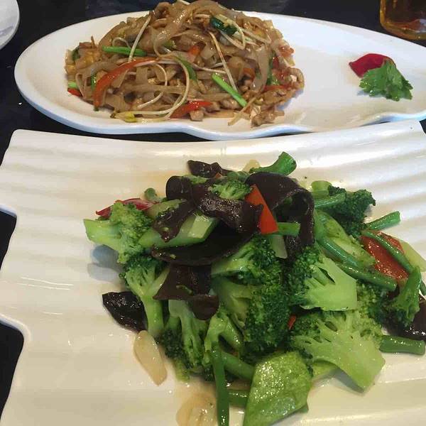 宜宾有两家朕之味,都是在宜宾的南岸上,一家是在财富中心,坐公交车30路在鑫空间下,就到财富中心的朕之味了,还有一家就是在莱茵春天商场里,4路,9路,3路都要到这里,交通方便。中午12点过来的,还好人还不多,至少没有坐满需要等位,选好了桌子坐下来就开始点餐了。餐厅是两层楼的餐厅,装修很简单,桌子也是那种2人桌或者4人桌的小桌子,菜单很精致,很大很厚一本,菜品的照片也拍着很好看,看了感觉每样都想点,点餐的时候,服务员还提醒我们两个人不要点多了,可以吃了不够再点,觉得这点服务员很不错。点了餐之后上菜很快,先上的就是肉丝炒河粉,28元一份,份量还是挺多的,河粉很不错,里面有肉丝,豆芽,肉丝还挺多的,还放了有煎蛋,配上河粉一起炒很好吃,觉得这里的河粉是吃过最好吃的河粉,很不错。田园什锦素炒,18元一份,一道以绿色蔬菜为主的菜,绿悠悠的,看起来很漂亮,里面有西兰花,豇豆,胡萝卜,红椒,木耳,放了蒜一起炒,吃起来味道很清淡,但是每样蔬菜都很入味,很营养健康的一道菜。陈皮兔丁,28元一份,一道凉菜,这应该是自贡的一道名菜,菜上面有很多干辣椒,兔肉吃起来偏辣,里面有陈皮,所以吃起来会微微带一点的甜,兔肉炒的比较干,吃起来有嚼劲,但是很小一块的兔肉,一盘菜里面干辣椒就占了很大一部分,但是很下饭的一道菜。潮香牛肉粥,28元一份,这家店的粥是这里的主打菜,也是必点菜,点的牛肉粥,里面放的牛肉很大一块噢,粥应该是熬了很久了,吃起来很香很糯,还很粘稠,味道很不错,而且份量也挺多的,两个人点一份就差不多了,特别是女生的话,如果一人点一份估计就有点多了。两个人吃4个菜,刚好够,102元,现在还有活动,加入会员,用餐8.8折,也可以在网上团购,90元团100元代金券,优惠力度都差不多。算下来人均消费50元左右、还是很划算,值得推荐!