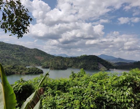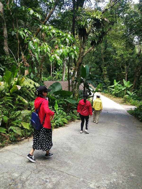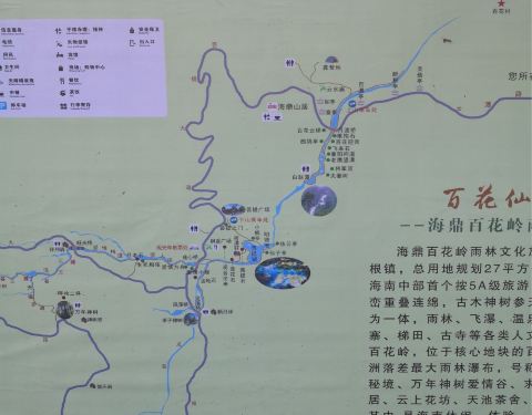拽着树枝藤条爬上来的山尖,惊呆的美景转回正题,继续百花岭,百花岭是一个还在开发中的景区,距琼中县城约7公里左右,是一段环山路,也要小心驾驶!景区旁边的停车场还在修建中,提前两小时在网上订票便可使用,49.9元含了景区电瓶车,现场售票价格略高。