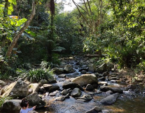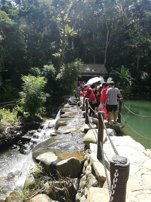 哇,什么情况 ,这家伙太厉害,正中靶心!正中靶心没射中的盆友也没有关系,女生深蹲起5个,男生俯卧撑5个,小小惩罚,不要害羞呀!小惩罚,再来一次继续走啊,山涧的水好清啊,看着都感觉凉爽!游人还不少呢!打卡第一站:百花天池正午的阳光逐渐灿烂起来!灿烂的阳光山间植物山间植物几个人嘻嘻哈哈,倒也不觉得累!扭啊扭看我魔鬼的步伐!很有意思的大石头,哇,好凉好凉!造型特别的大石头红蜻蜓似乎也不怕行人了,静静的摆着POSE等我拍照呢!飞呀飞呀,看那红色蜻蜓飞过蓝色天空.....天然的大相框,来来来,拍照留念啦!天然的相框魔镜魔镜,四个小矮人,请问还有三个去哪里了?又一个打卡点这路面是刚拨过火罐吗?来按摩可好?偶遇一条麻花辫......天然的麻花辫累了休息一下吧阳光透过树林洒下来.....光影我是托人韩天王山间好多类似的藤条......搞怪剧照起一波......上吊么?这是六亲不认的步伐么?打卡,我们是认真的万年神树打个卡!万年神树终于看到瀑布啦,好晒好晒好晒......婉约派&豪放派我们走走拍拍看看,这是一个天然的公园,汇聚了雨林、飞瀑、泉水、湖泊、溪流、沟谷、奇石......顺着溪边行走,体验着踏石戏水的欢乐,树荫斑驳,溪流顺势而下,山涧溪水清澈见底,清凉舒适,岭上古木参天,形态各异,古老的树种盘根错节密不透风遮天蔽日,龙须藤、麻花辫,各种造型的藤条到处都是,山间长满了奇树异花,顺手拍色彩缤纷的小果子,还有很多好几个才能抱住的大树,也有很多珍贵的木材吧,看其中之一打卡点的万年神树,长长藤条垂直下来,非常壮观!打卡点的小姐姐说,神树有好几千年,藤条也有好几千年,加起来就上万年喽!