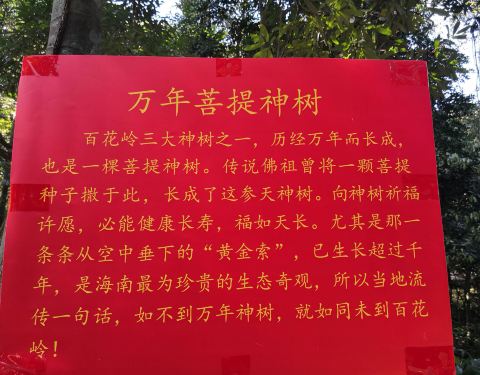 琼中百花岭在网上很少看到介绍,这么好的景点没有介绍可惜了琼中百花岭在网上很少看到介绍,这么好的景点没有介绍可惜了。大年初三,到百花岭景区,门票88,海南身份证46,三月三前海南人免费。但游览车票省不了,因为里面需要爬山差不多5公里。主要有三地方不错,一是瀑布...琼中百花岭在网上很少看到介绍,这么好的景点没有介绍可惜了。大年初三,到百花岭景区,门票88,海南身份证46,三月三前海南人免费。但游览车票省不了,因为里面需要爬山差不多5公里。主要有三地方不错,一是瀑布,可沿着溪水拾级而上,欣赏溪流和瀑布,沿途都是热带雨林景色。二是菩提秘境,有一湖,宛如世外桃源,天然氧吧。三是万年古树,藤条从树上平行垂下,很像古琴琴弦。 展开