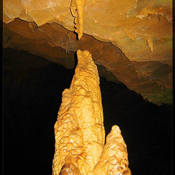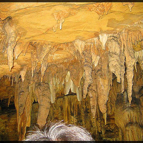 有很多石笋都有非常多的名字,发挥了人类的各种想象力,印象比较深的是有一片叫做花果山,上面很多石笋,样子都很像各种猴子,有一个特别像美猴王,巧的是,后面的那做墙壁上有一个洞,还有水流下,特别像水帘洞。