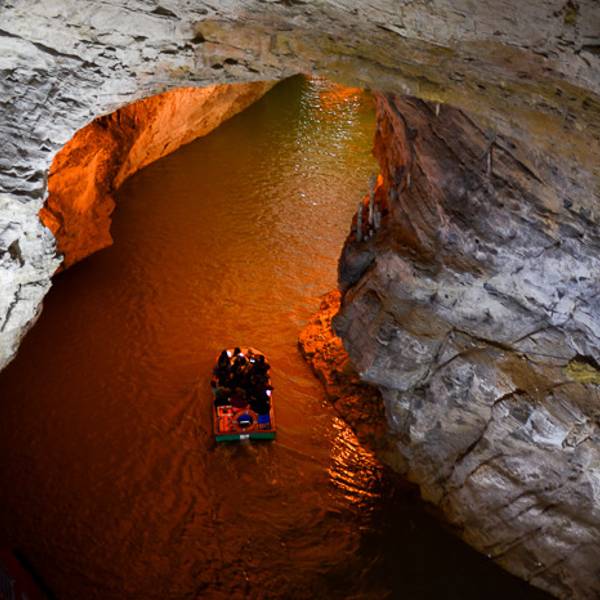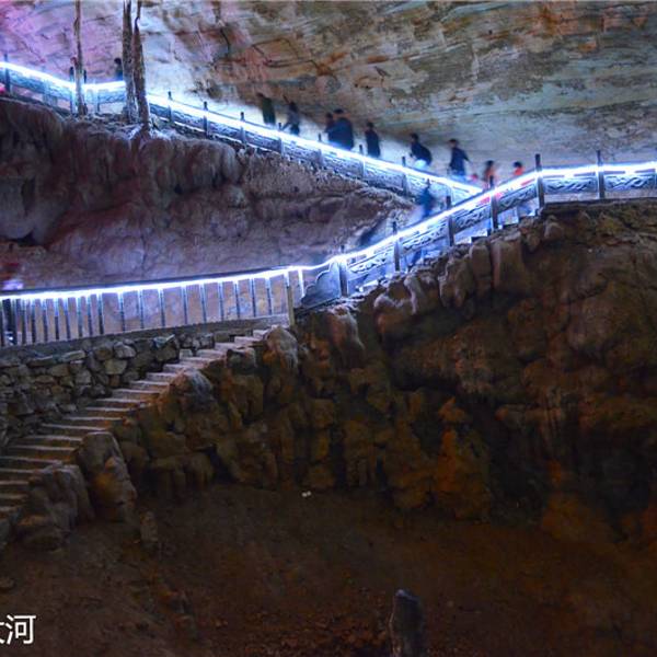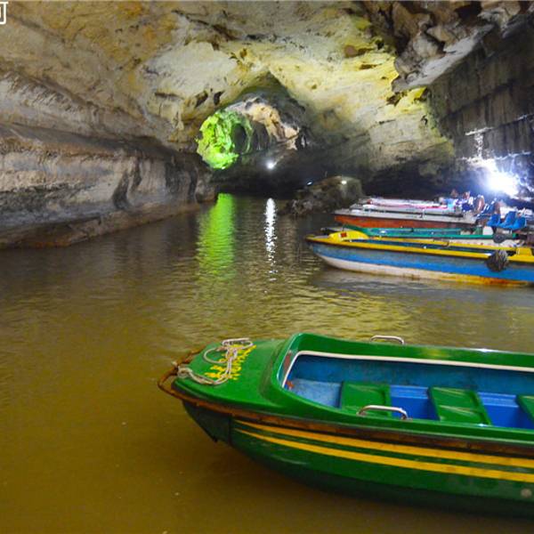 因为进洞后,里面是暗河,需要乘船游览,所以景区在洞口都安排有带队的导游,一路带着我们乘船,讲解洞里的故事。