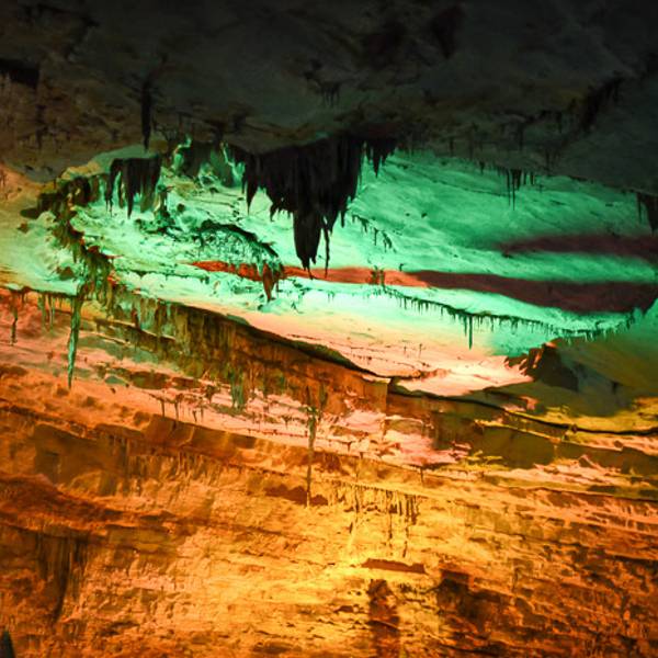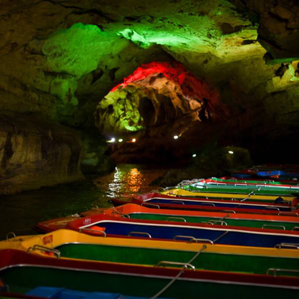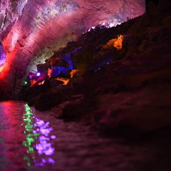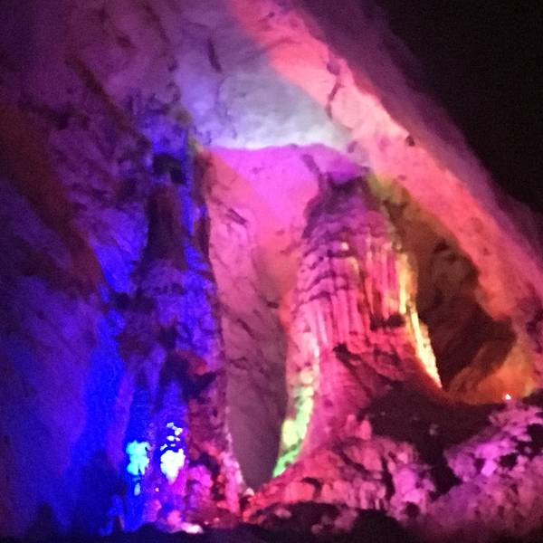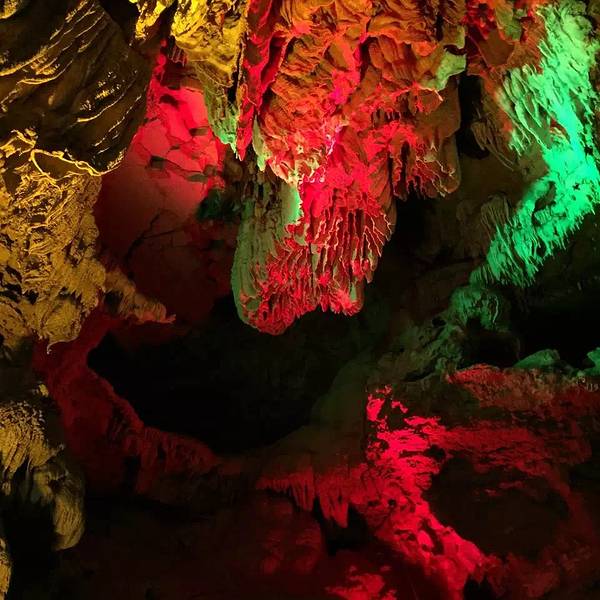 进去溶洞以后感觉是个迷宫,又很有一种地下宫殿的感觉,很迷幻又很神秘的感觉,跟着当地的导游美女小姐姐一路走,全程大概要一个半小时至两个小时,中间还会一起乘船,在溶洞里的地下河走一遭,也感觉很独特的体验。水深大概5-6米。