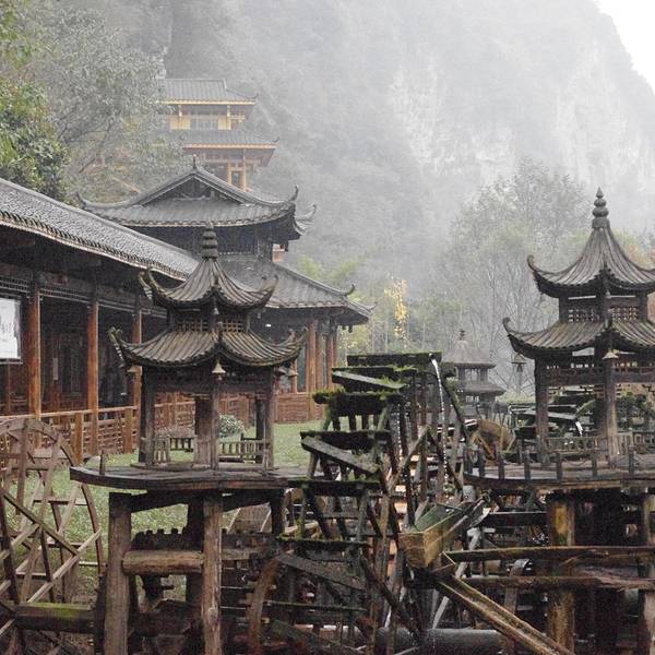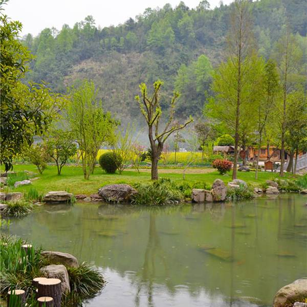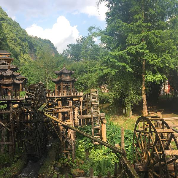 这个景区做的还比较精致,在正式进入溶洞之前是一个像公园一样的地方,有池塘,还有很长的水车,也有一些小亭子,还有小花小草,很有田园风光。