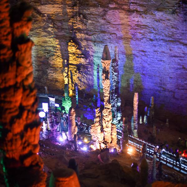 进入溶洞门口有一个很长的梯子,然后会有统一的导游带进去,人数到一定数量自动组成了一个临时旅游团,每个团都有一个导游,介绍一些景点的内容和故事,不然我觉得进了景区也一脸懵逼,效果就会大打折扣了,所以我觉得这个设置还是很好的。