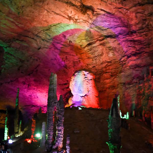 金骆驼 这里在旅游旺季的时候人非常多,基本上早上八点以后就必须要排队了,所以为了避免造成洞内的拥堵,一...黄龙洞并不在武陵源风景区核心景区,所以需要在武陵源城区乘坐1路公交车直达黄龙洞,每10分钟一趟车,或换乘武陵源出租车也可到达黄龙洞。下车后还需要步行15分钟才能到洞口。黄龙洞的门票是100元,包含洞内游船...黄龙洞并不在武陵源风景区核心景区,所以需要在武陵源城区乘坐1路公交车直达黄龙洞,每10分钟一趟车,或换乘武陵源出租车也可到达黄龙洞。下车后还需要步行15分钟才能到洞口。黄龙洞的门票是100元,包含洞内游船费用。学生可以凭证60元。这里在旅游旺季的时候人非常多,基本上早上八点以后就必须要排队了,所以为了避免造成洞内的拥堵,一般会在入口处进行参观人数限制,由一位景区导游免费带领参观。里头的气温比较低,路也较为湿滑,建议大家不要穿拖鞋之类的鞋子,容易滑倒。不过里头的石钟乳,在五光十色的灯光映衬下,确实如梦似幻。其中最有名的就是“定海神针”了,但个人觉得其实都差不多。另外,为了帮助大家更好地游览黄龙洞,送上一些温馨小贴士:1. 要想在溶洞类景点玩得开心,一是靠想象,二是靠灯光。2. 洞内气温,特别是河中乘船这一段比较低,所以即使是夏季前往,建议最好也带件外套。3. 黄龙洞作为喀斯特地貌的典型代表,国内类似的溶洞有不少,各自的差别不大,也就是规模大小之分,如果之前去过类似的溶洞,则没有必要再去了。 展开