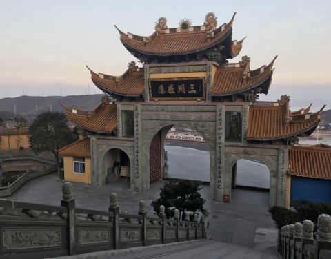 从泗礁岛出发,乘船地点在菜园镇的小菜园码头(地点:大悲山下的五龙乡)。