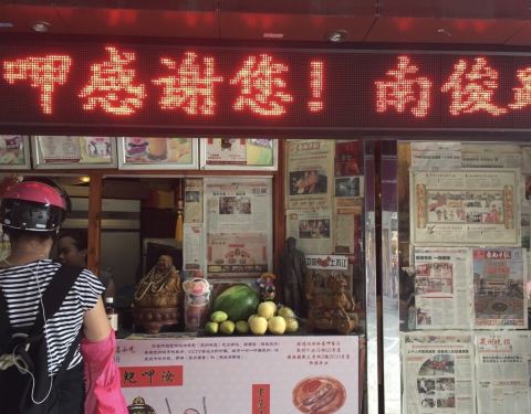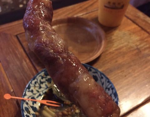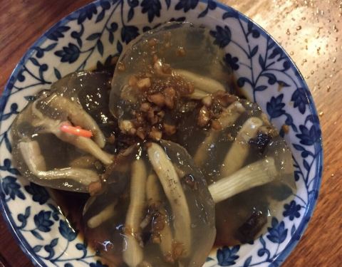 南俊路上的一家小店,很小很小,门口的拉门我侧身才挤进去,老板一直坚持传统的土笋冻制作技艺,在本地也小有名气,路过还是要尝尝的^_^,冰凉顺滑,话说真是比厦门吃到的要好吃呢^_^,但是那个芒果爽就停葡萄的不点也罢-_-#,肉肠吃的时候一定要小心,咬一口油呲的到处都是-_-#