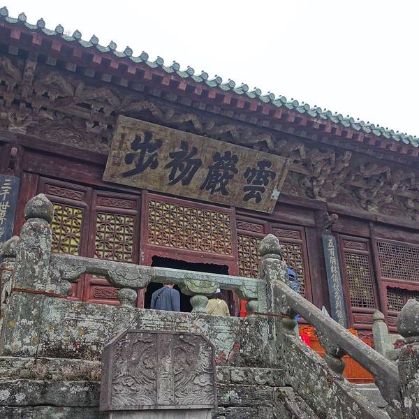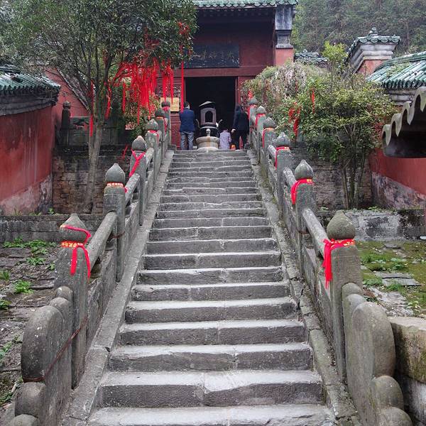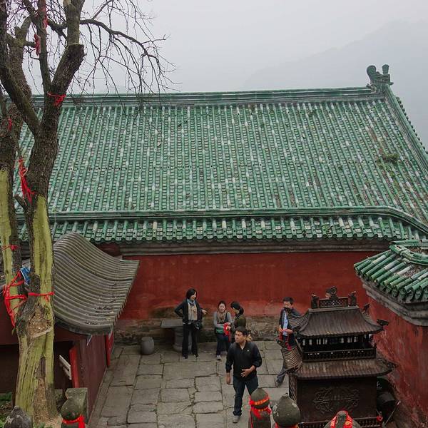 复真观,这座在武当山狮子峰60度陡坡上的古代建筑,被当今建筑学家赞誉为:利用陡坡开展建筑的经典之作。 复真观背依狮子山,右有天池飞瀑,左接十八盘栈道,远眺似出水芙蓉,近看犹如富丽城池。古代建筑大师们,巧妙地利用山形地势,不仅创造出1.6万平方米的占地面积,而且建造殿宇200余间,结构出“一里四道门”、“九曲黄河墙”、“一柱十二梁”、“十里桂花香”等著名景观。整体布局左右参差,高低错落,谐调而完美,充分体现道教“清静无为”的思想内涵。置身复真观的最高处,俯视深壑,曲涧流碧;纵览群山,千峰竟秀;每逢夕阳西下,还可见武当“太和剪影”的奇观。 数百年间,复真观的人文景观被世人广为赞颂。