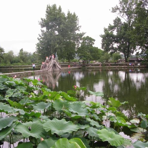 历史:南湖建于明万历丁未年,距今已有400多年的历史了,由于宏村人丁兴旺,屋舍剧增当年的月塘不足于附和,因此就修建了现在的南湖,当然这中间也曾修葺过多次,南湖位于宏村村口,一拱桥,链接南湖的两边,也将南湖隔成东西两湖,桥两侧的荷花在夏日尽相绽放,桥对岸宏村的明清徽式建筑倒映如何,这里便成为了全村景色最好的位置。