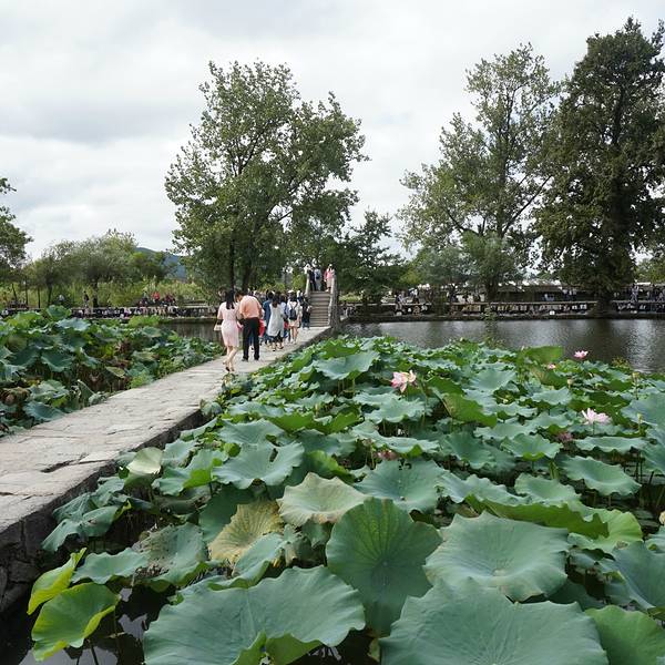 南湖成一个拱形弧状,因此南湖也是宏村最佳的摄影位置,一般情况下,小路都是坐满了写生的学生,想要占据有力地形需要起早,在南湖也可以泛舟,在流水间感受明清时期留下的徽式建筑,南湖虽小确是宏村精华之所在,到了宏村第一眼的画卷就是小桥、流水、荷花和那一股子水墨画般的徽式老屋子。