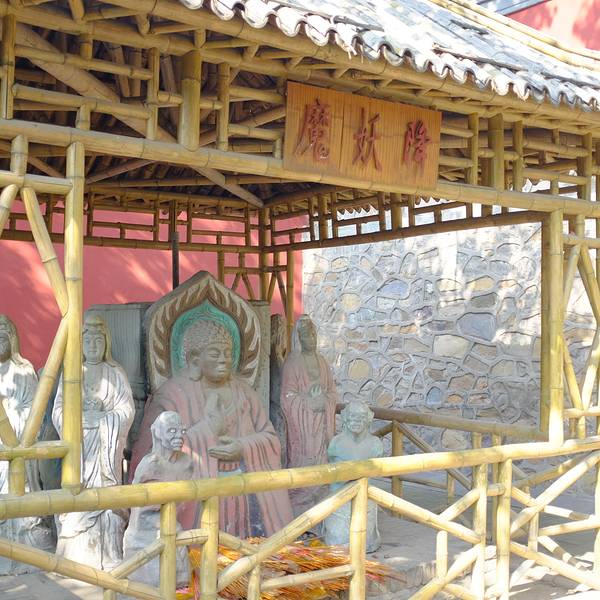 进入香界寺门殿,左右两旁分立哼哈二将沿路一直向上走,再爬上一个平台后便到了六处香界寺